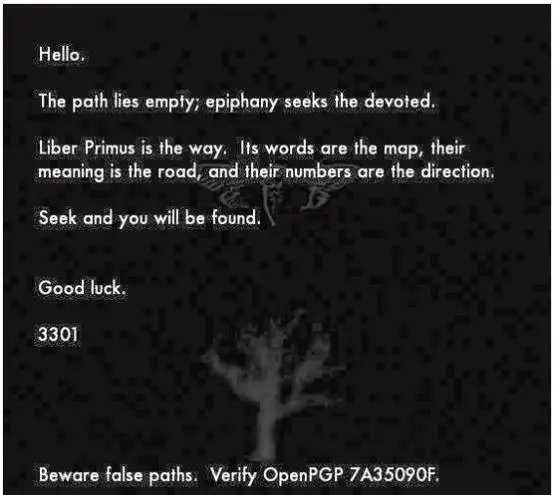 The text contained a cipher that required a deep understanding of cryptography to decrypt. The puzzle circulated on the internet for about a month, but nobody knew exactly what was going on. Shortly after, rumors began circulating that there was a hidden community or intelligence agency behind it all. Eventually, Joel Eriksson emerged as one of the individuals who managed to solve this cipher.